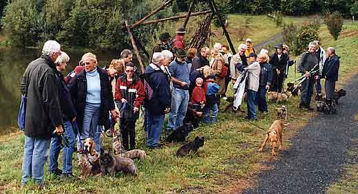 | Diesmal hat das Schlechtwetter rund um Wien etliche Wanderlustige abgeschreckt, aber wir hatten ein Super-Wanderwetter vor Ort, und es waren doch 37 Zweibeiner mit 26 Vierbeinern da. Wir haben eine kleinere Runde für die ganz jungen Hunde mit Burgbesichtigungsmöglichkeit zusammengestellt, aber der Großteil marschierte die große Strecke. Sie wurde von Herrn Langhammer liebevoll ausgesucht und sogar stellenweise die Sträucher am Wegrand breiter ausgeschnitten, damit wir beim Plausch nebeneinander gehen konnten. Die Hunde waren glücklich, wir natürlich auch. Wir konnten diesmal wieder als die am weitest angereisten unsere Freunde aus Thüringen begrüßen, die direkt von der Europa-Ausstellung in Bratislava kamen. Alle verbrachten im Anschluß an die Wanderung einen gemütlichen Nachmittag im Burgrestaurant. Bei der Gelegenheit habe ich den neuen Videofilm über meinen Zwinger vorgestellt, der sehr gut gefallen hat und ab sofort erhältlich ist. mehr zum Video Ich möchte mich nochmals bei allen bedanken, die gekommen sind, und freue mich schon auf ein Wiedersehen am Ostermontag, 12. April 2004, bei einer Wanderung im Raum Wien/Nö. |