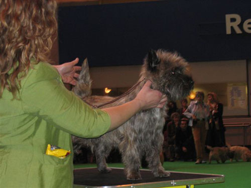 Für mich ist Crufts das Großereignis in Sachen Hund. Heuer war es sehr spannend, weil ich ja seit 2005 meinen Zwinger in England habe, und aus den beiden Würfen Kinder bzw. die erste Generation danach zu sehen war. Ich war sehr zufrieden, vor allem mit dem „Handling“ meiner Freundin Dawn und mit unserer Sandra Burger, die am Samstag meinen GB-Ch. HYDE CASTLE Flic Flac for Carradine super gehandelt hat. Am Sonntag ist sie für Österreich als Vertreterin im Internationalen Juniorhandling-Bewerb an den Start gegangen und hat sich gut geschlagen. 187 Cairn Terrier waren im Ring und jede Menge Europäische Besucher ein kritisches Publikum. Allgemein konnten wir „Europäer“ feststellen, dass wir mit unseren Hunden sehr gut mitmischen können. Was natürlich aufgefallen ist und da können wir von den Englischen Ausstellern viel lernen die Ringdisziplin bei den Hunden. Es gibt ganz einfach keine untrainierten Hunde. Sie werden dem Standard entsprechend an der lockeren Leine, freudig aufschauend zum Handler, frei stehend mit hoch getragener Rute präsentiert und die Hunde zeigen sich ganz toll. Es waren diesmal noch Cairn Terrier aus Holland, Schweden, Deutschland, Irland, Spanien und Finnland dabei, die alle Topqualität waren und super vorgeführt wurden, aber leider nicht in die Wertungen kamen. Die heurige Richterin war dem „Ausland“ nicht gewogen. 7 HYDE CASTLES waren am Start. Einige Ergebnisse aus meinem Zwinger, bzw. Nachzucht: Ergebnisse aus meinem Zwinger und Nachzucht: HYDE CASTLE Ozzy Oswald Special Puppy 5. Platz (11 Meldungen) Father: Ch. HYDE CASTLE Getsby Gunfire Mother: Ch.HYDE CASTLE Unique Umbra Glenchess Gabriel over Carradine Junior Dog 6. Platz (8 Meldungen) (Son of Flic-Flac) Ch. HYDE CASTLE Flic Flac for Carradine Open Class no ranking (19 Meldungen) Carradine Polly Flanders & Carradine Sapphire at Spawyche Special Puppy Bitch 3. und 4. Platz (von 18) (granddaughters of Umbra + Ch.HYDE CASTLE Black Ben) Carradine Magic Star Yearling Bitch 5. Platz (von 17) (daughter of HYDE CASTLE Jackpot Jimmy + Magic Tochter von Flic-Flac) Bedrule Talja Limit bitch 3. Platz (von 17) (daughter of Flic-Flac) Curtisey Foreign Affair at Carradine Open Bitch (19 Meldungen) no ranking, (daughter of Flic Flac) 5 CACIB in Europe |